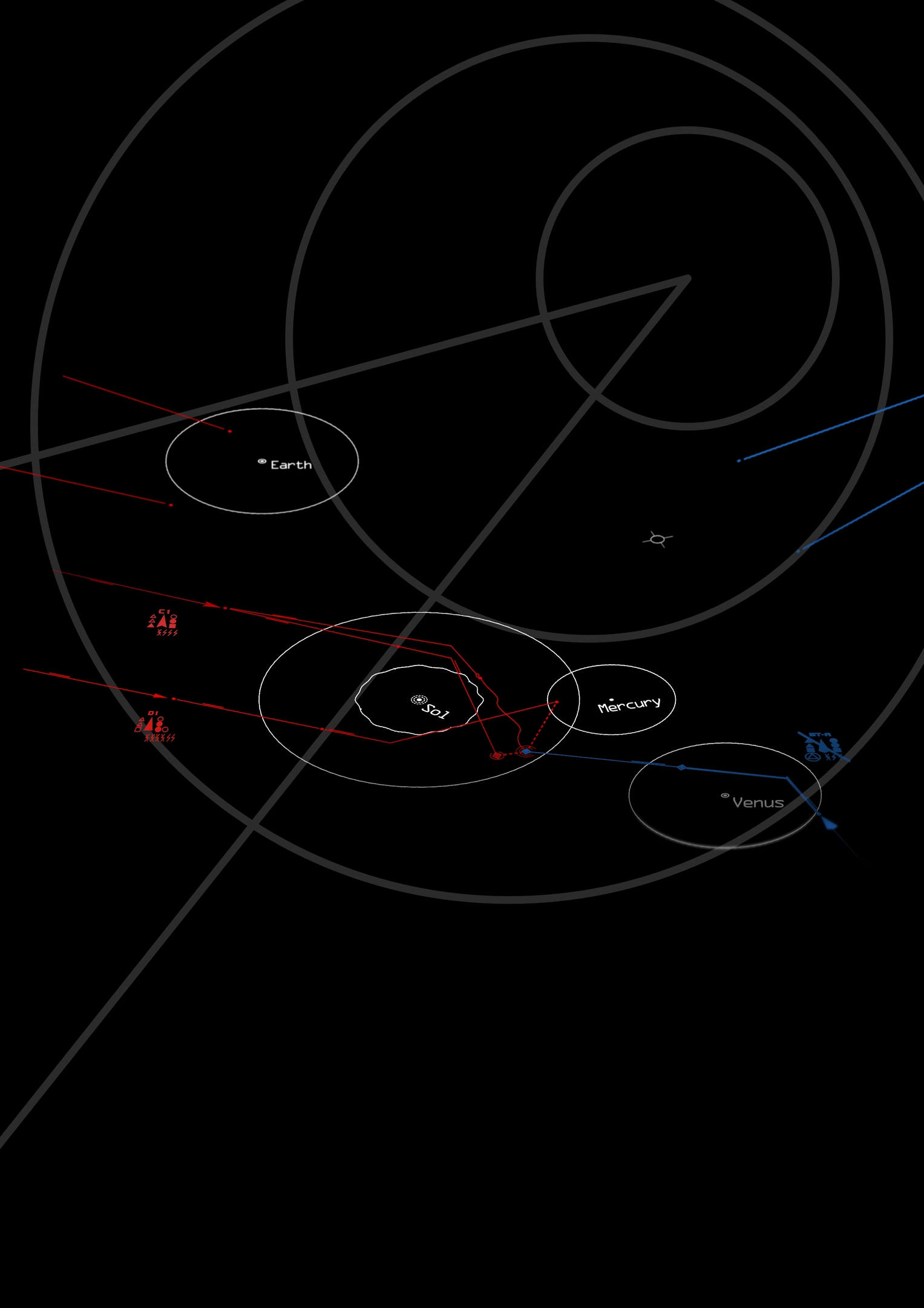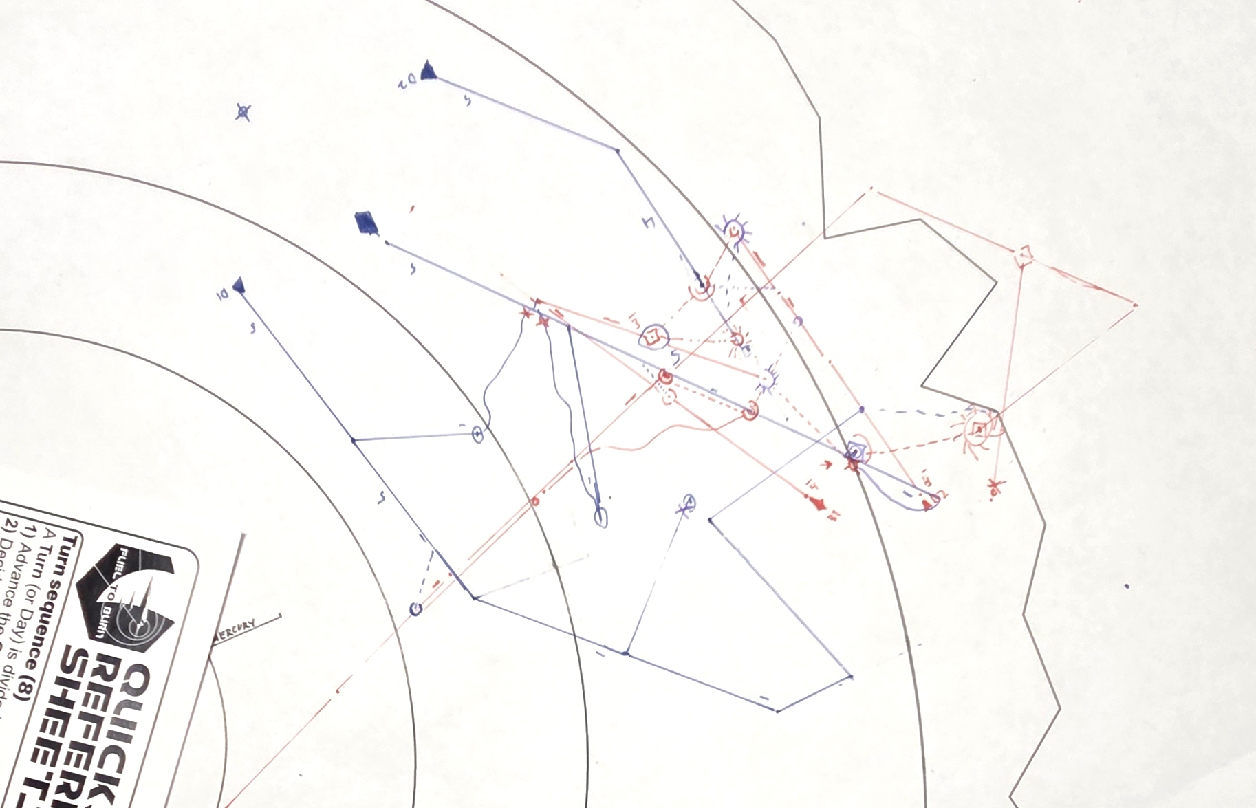 A4 sheet with a template for gravity deflection and asteroid field boarder.